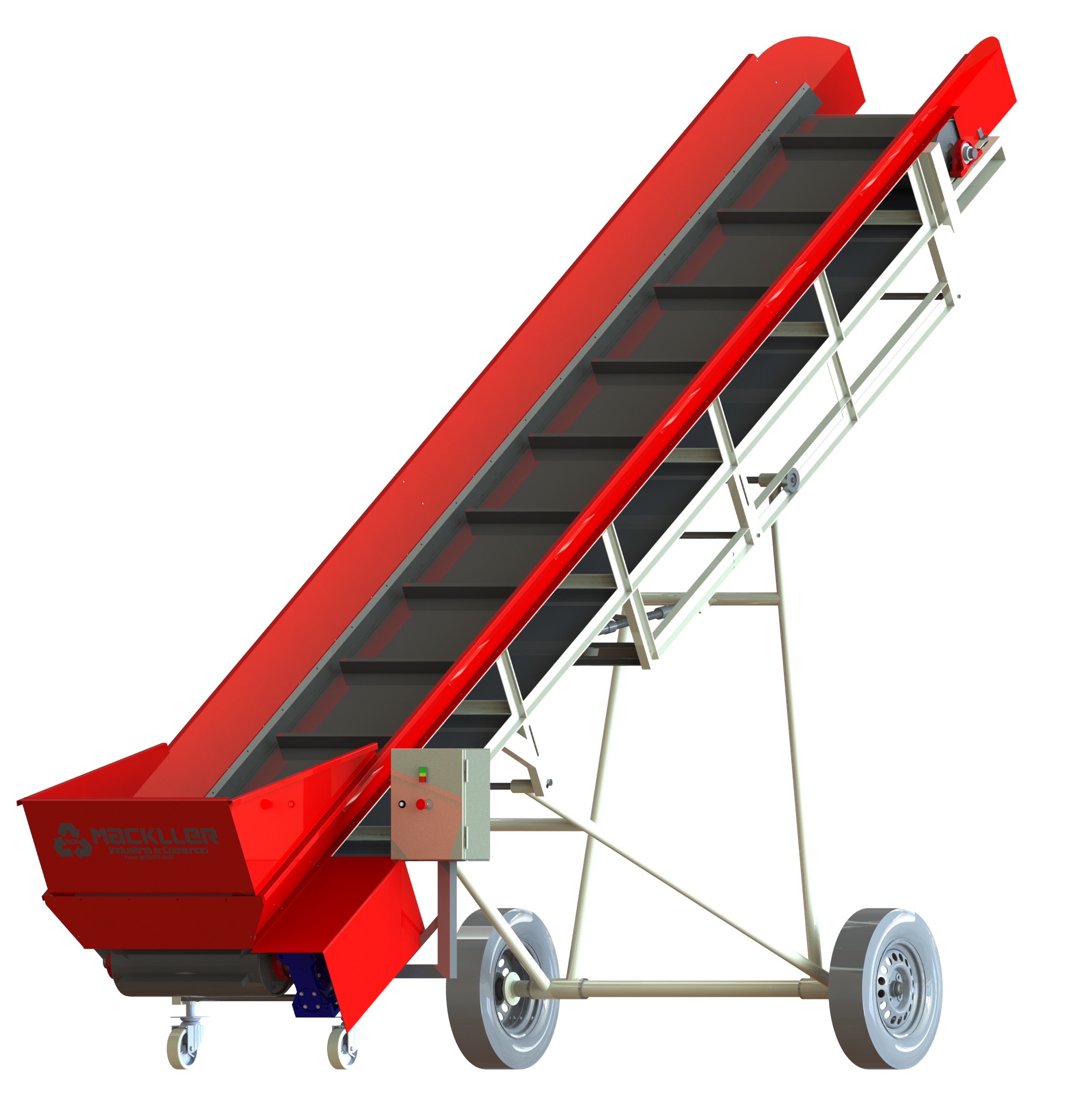 Esteira alimentadora tem o sistema robusto, projetado para resistir a uma operação diária com alto rendimento. Seu sistema é acionado por motores.
